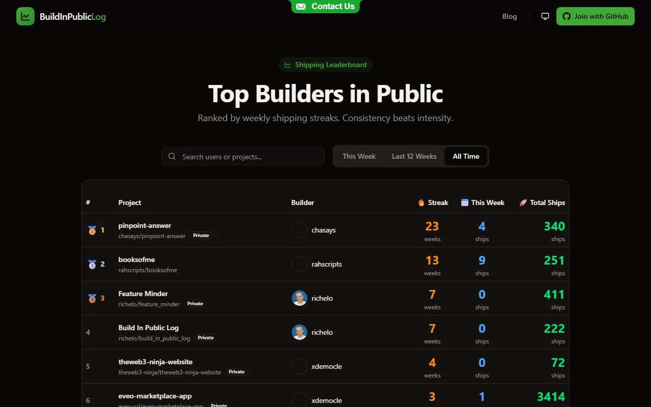 Build In Public Log is making waves in the AI Productivity space with its focused approach to productivity and workflow optimization. Build In Public Log tracks weekly GitHub commits to celebrate and motivate consistent project building. Rather than trying to be everything to everyone, the platform has carved out a niche by concentrating on what professionals, teams, and business leaders actually need to streamline more effectively.