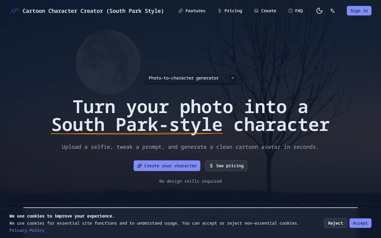 Cartoon Character Creator (South Park Style) is a paid tool, which signals the team's commitment to delivering professional-grade capabilities and ongoing support. While the exact pricing may vary based on your selected plan and usage requirements, the investment is positioned to deliver clear ROI for designers, artists, and creative professionals who regularly work in image generation and visual design and need reliable, high-quality output.