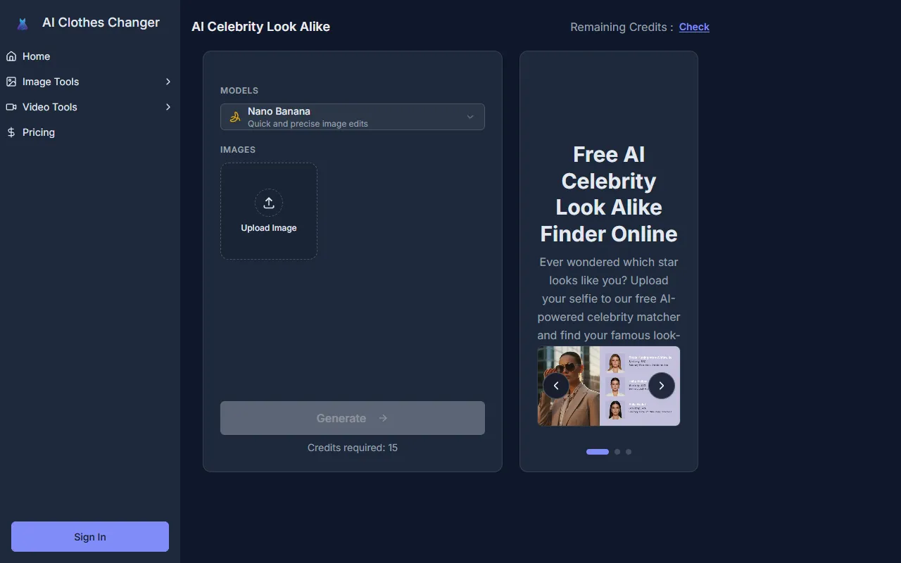 Whether you are a newcomer exploring AI tools for the first time or a veteran looking for a more efficient solution, Celebrity look alike finder has something to offer. The free model means the barrier to entry is nonexistent, so there is little risk in giving it a try and seeing how it fits into your workflow. The worst that can happen is you discover a new approach to image generation and visual design that saves you significant time.