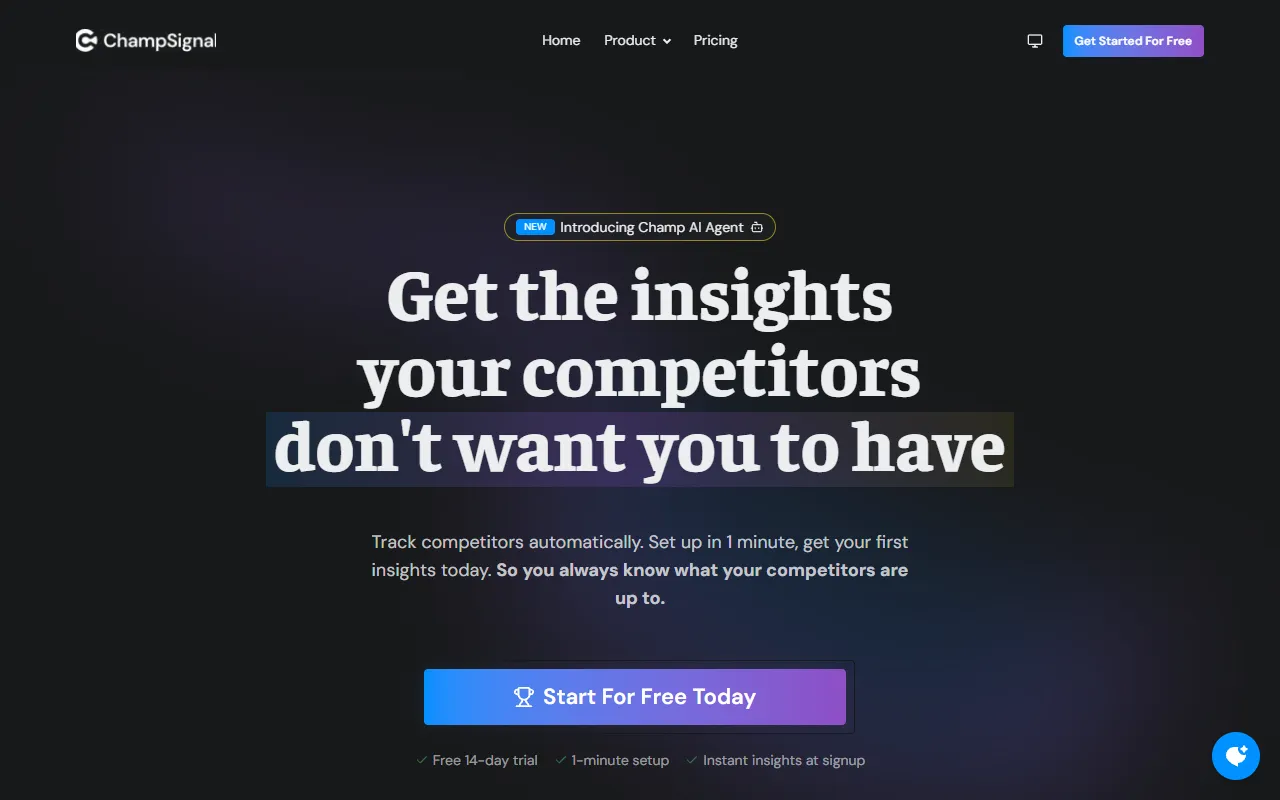 ChampSignal AI monitors competitors’ website, ads, SEO, and news, delivering smart, noise-free alerts.