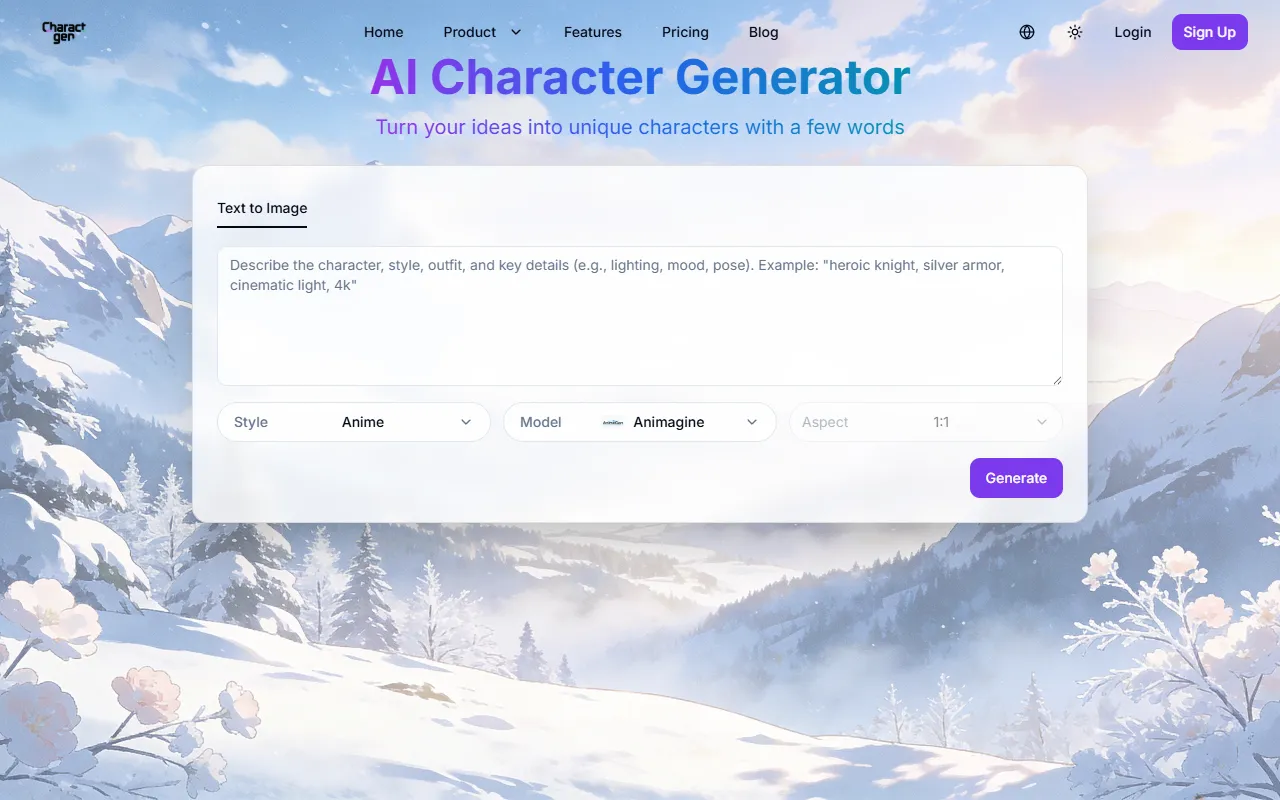 Create unique, high-resolution character portraits instantly with customizable style, lighting, and mood.