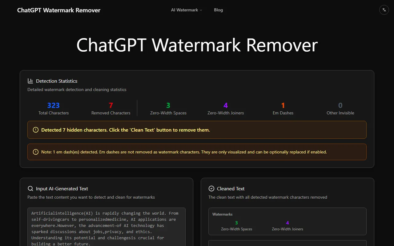 Behind the scenes, chatgptwatermarkremover leverages state-of-the-art machine learning models that have been trained on vast datasets relevant to content creation and writing. These models analyze your input, understand context and intent, and produce output that aligns with professional standards and your specific goals. The processing happens in real time, so you get results quickly without long wait times.