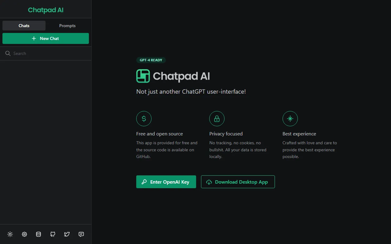 Privacy-centric chat interface that enhances user experience with data management features and desktop app.