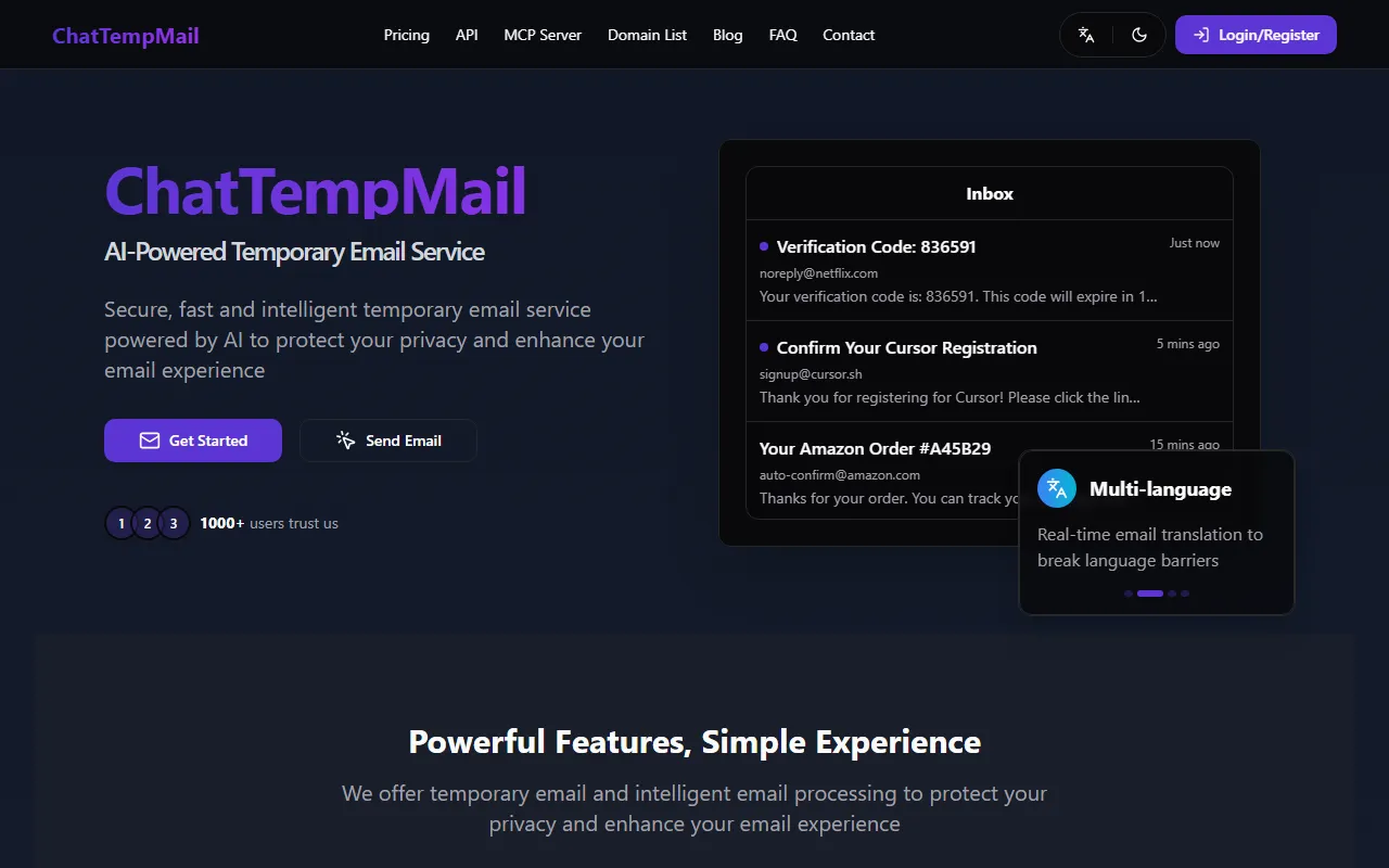 ChatTempMail offers instant, AI-powered temporary emails for privacy, spam protection, and smart Q&A.