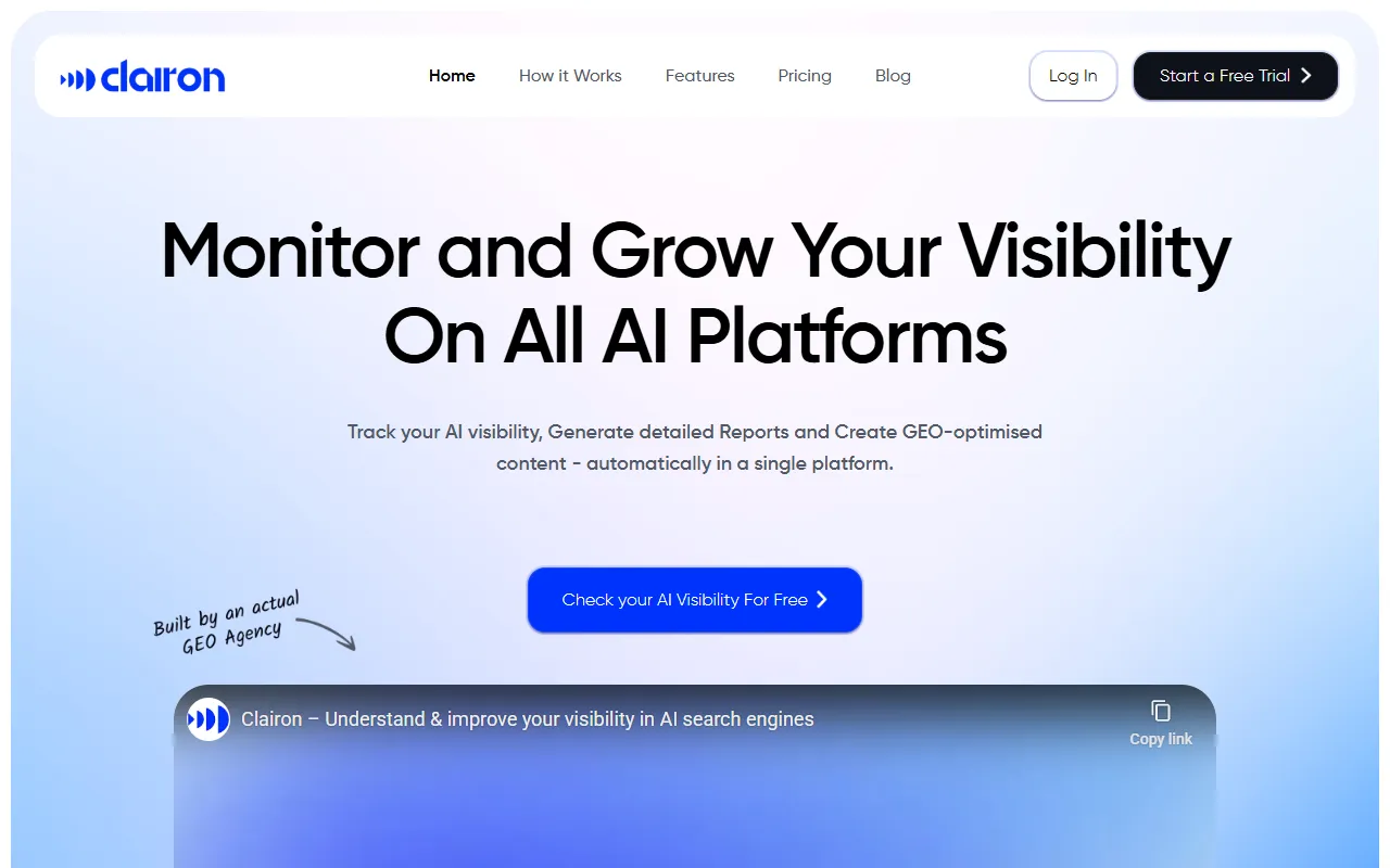 In the evolving world of digital marketing and growth, finding the right tool can be the difference between thriving and merely surviving. Clairon AI has positioned itself as a compelling option for marketers, growth hackers, and brand managers who demand more from their AI-powered solutions. Clairon tracks brand visibility and competitor insights in AI-generated search results across multiple platforms.