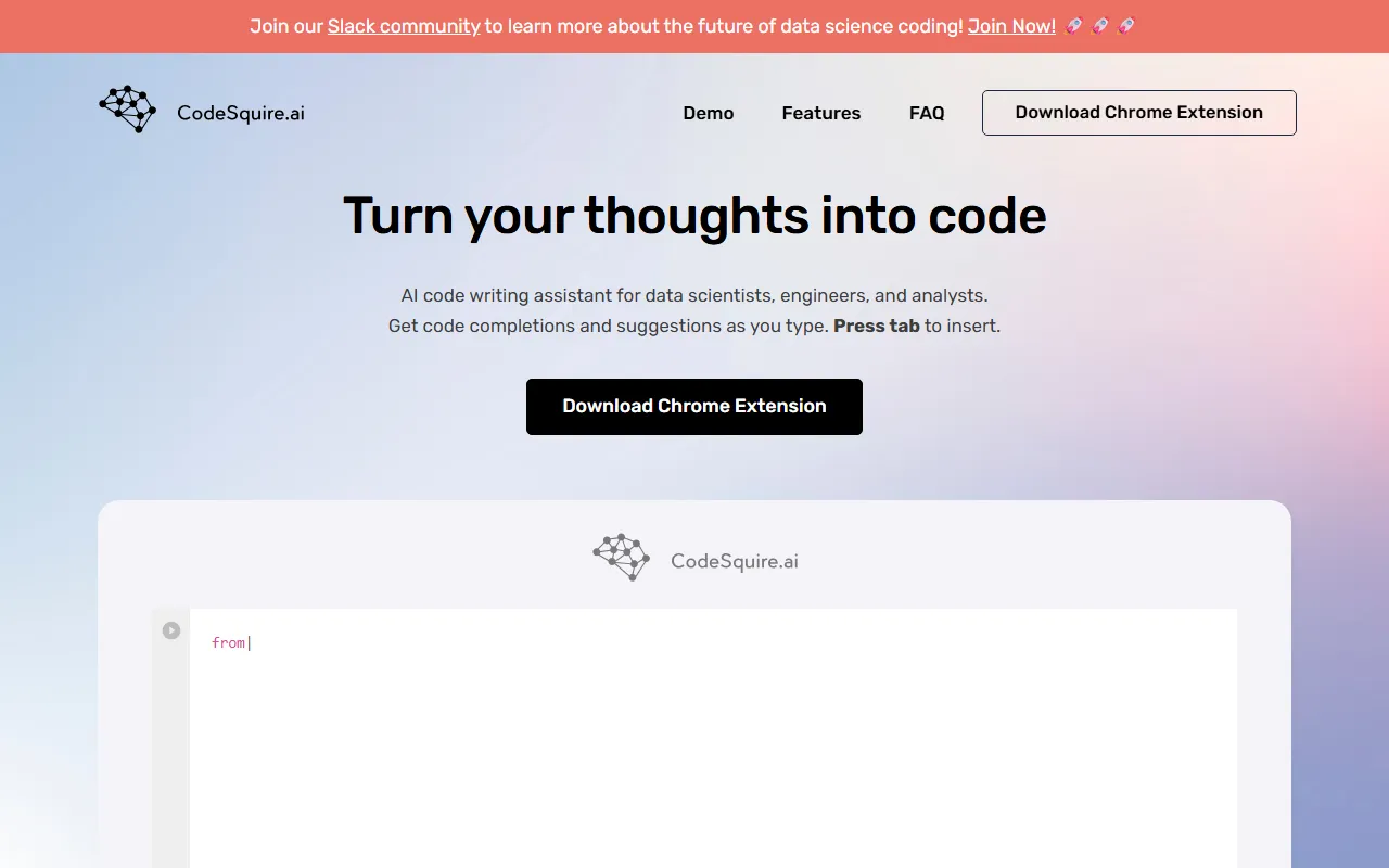 For professionals, teams, and business leaders seeking smarter ways to handle productivity and workflow optimization, CodeSquire presents an intriguing proposition. Accelerate coding with intelligent autocomplete, comments-to-code translation, and library suggestions for data professionals. The platform aims to bridge the gap between complex AI technology and practical, everyday utility, making advanced capabilities accessible without requiring deep technical expertise.