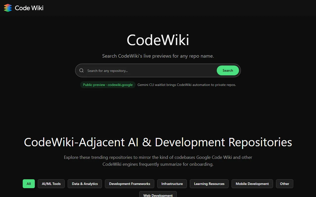 In the evolving world of content creation and writing, finding the right tool can be the difference between thriving and merely surviving. codewiki has positioned itself as a compelling option for writers, marketers, and content creators who demand more from their AI-powered solutions. CodeWiki auto-updates code docs and diagrams, plus offers AI Q&A linked to your codebase.