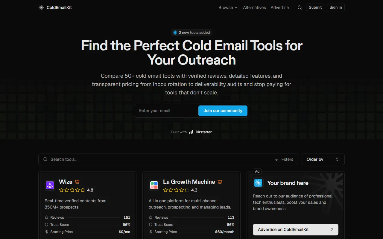 Cold Email Kit: Expert-vetted directory helping you quickly compare and choose top cold email tools.
