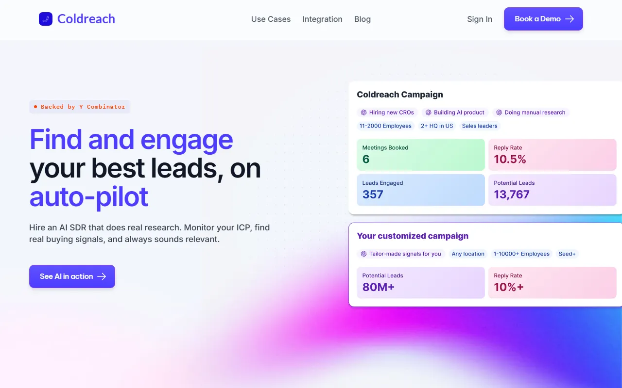 Coldreach AI automates sales prospecting by detecting real-time buying signals and personalizing outreach.