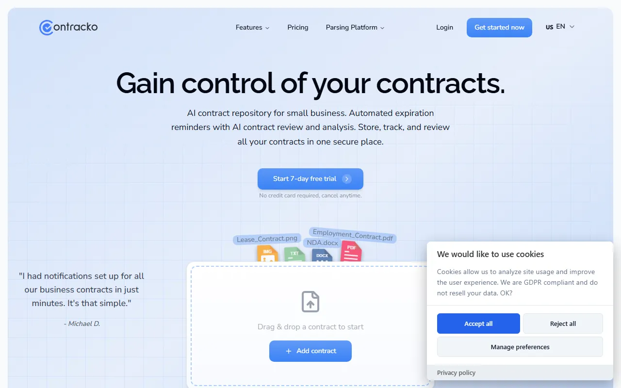 Contracko simplifies contract management with AI summaries, smart reminders, and organized tracking.