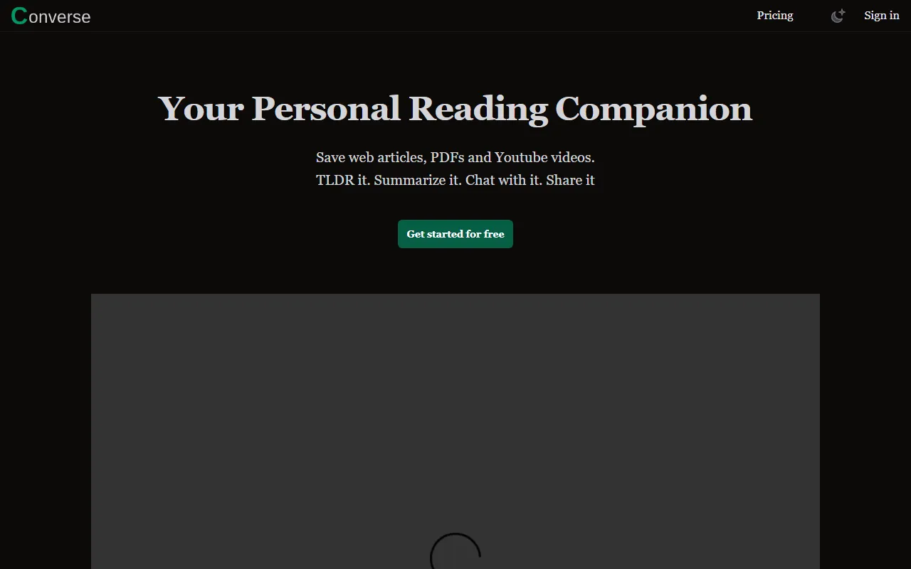 Converse: AI-powered reader for instant summaries, deep chats, organizing, and sharing documents effortlessly.