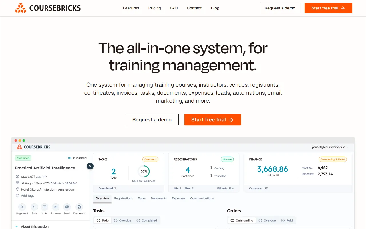 Coursebricks: all-in-one training management for scheduling, payments, automation, and growth.