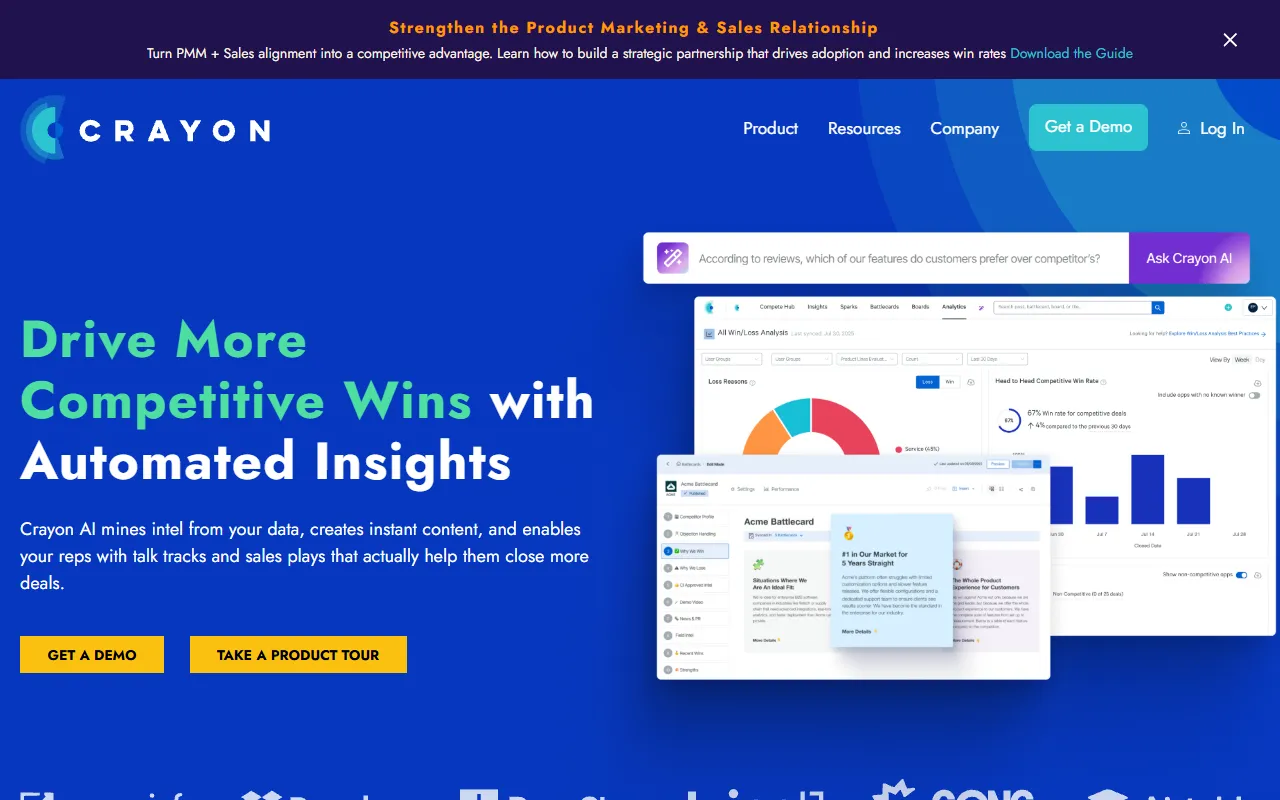 - Competitive intelligence: Crayon provides robust competitive intelligence functionality, allowing users to optimize with precision and efficiency. This feature is powered by advanced AI models that adapt to your specific use case and improve over time based on your interactions.