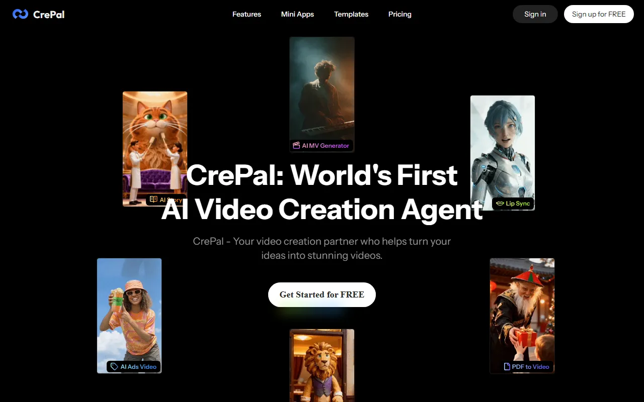CrePal: all-in-one AI video creator transforming text prompts into polished marketing videos effortlessly.