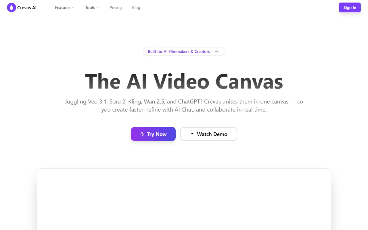 Crevas unifies top AI video models into one seamless platform for streamlined filmmaking.
