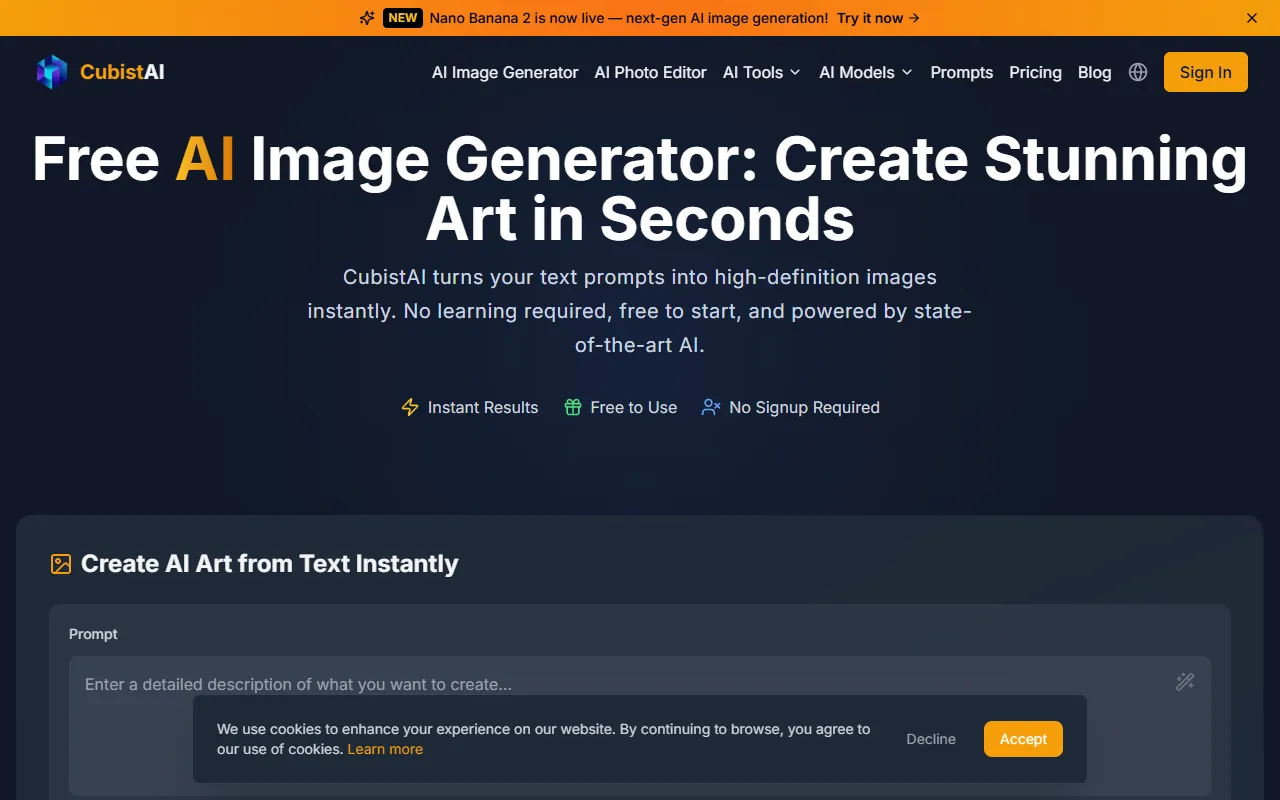 CubistAI: Free, unlimited AI art generator creating stunning, customizable images instantly, no signup needed.