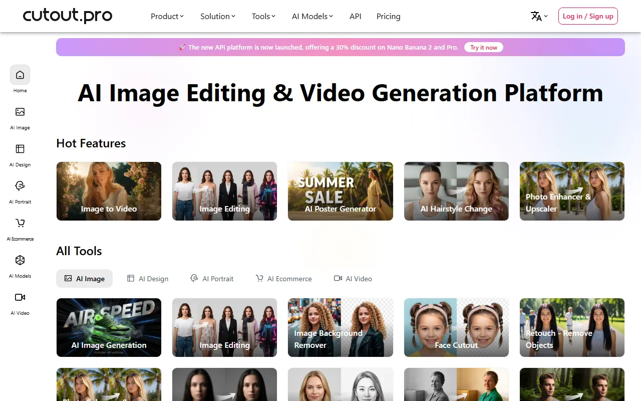 - Design tools: Cutout Pro provides robust design tools functionality, allowing users to generate with precision and efficiency. This feature is powered by advanced AI models that adapt to your specific use case and improve over time based on your interactions.