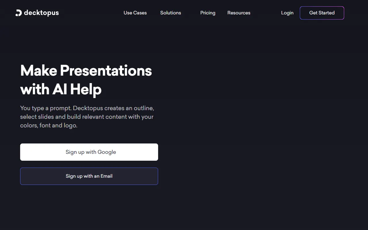 Beginners will benefit from the guided experience and templates that help them get started quickly, while experienced professionals will appreciate the depth of control and customization available beneath the surface. This dual-layer approach makes Decktopus accessible without being simplistic, catering to a wide spectrum of expertise levels.