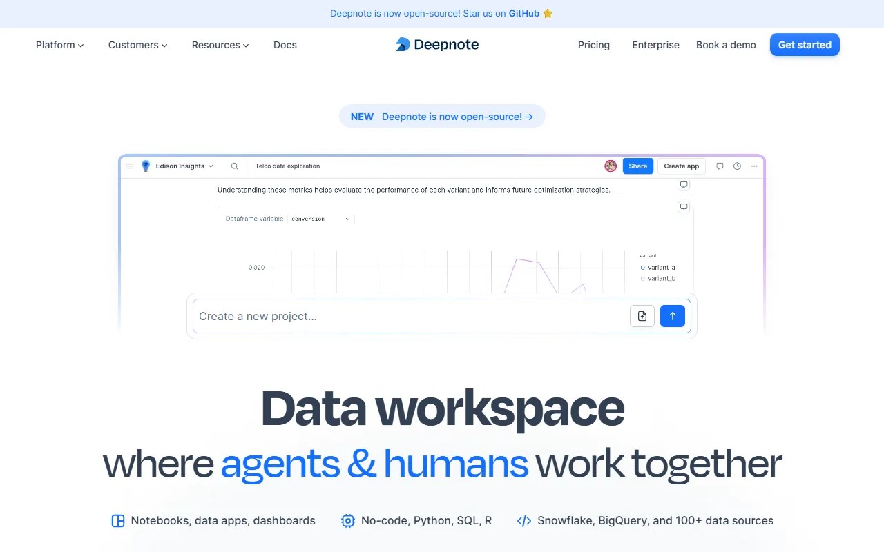 For professionals, teams, and everyday users seeking smarter ways to handle AI-powered assistance and automation, Deepnote presents an intriguing proposition. AI-powered collaborative data notebook platform for data science teams with real-time collaboration and integrated database connections. The platform aims to bridge the gap between complex AI technology and practical, everyday utility, making advanced capabilities accessible without requiring deep technical expertise.