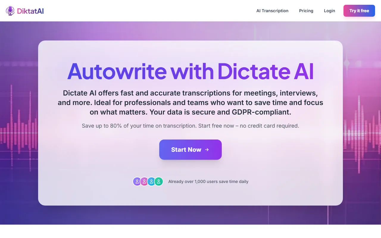 Diktat AI enters the AI Audio arena as a purpose-built AI solution for podcasters, musicians, and audio engineers. Diktat AI quickly transcribes meetings and interviews, saving time with accurate, GDPR-compliant text. In a market crowded with generic tools, Diktat AI distinguishes itself through its specialized focus on delivering measurable results in audio production and enhancement and a user experience designed to get you productive from day one.