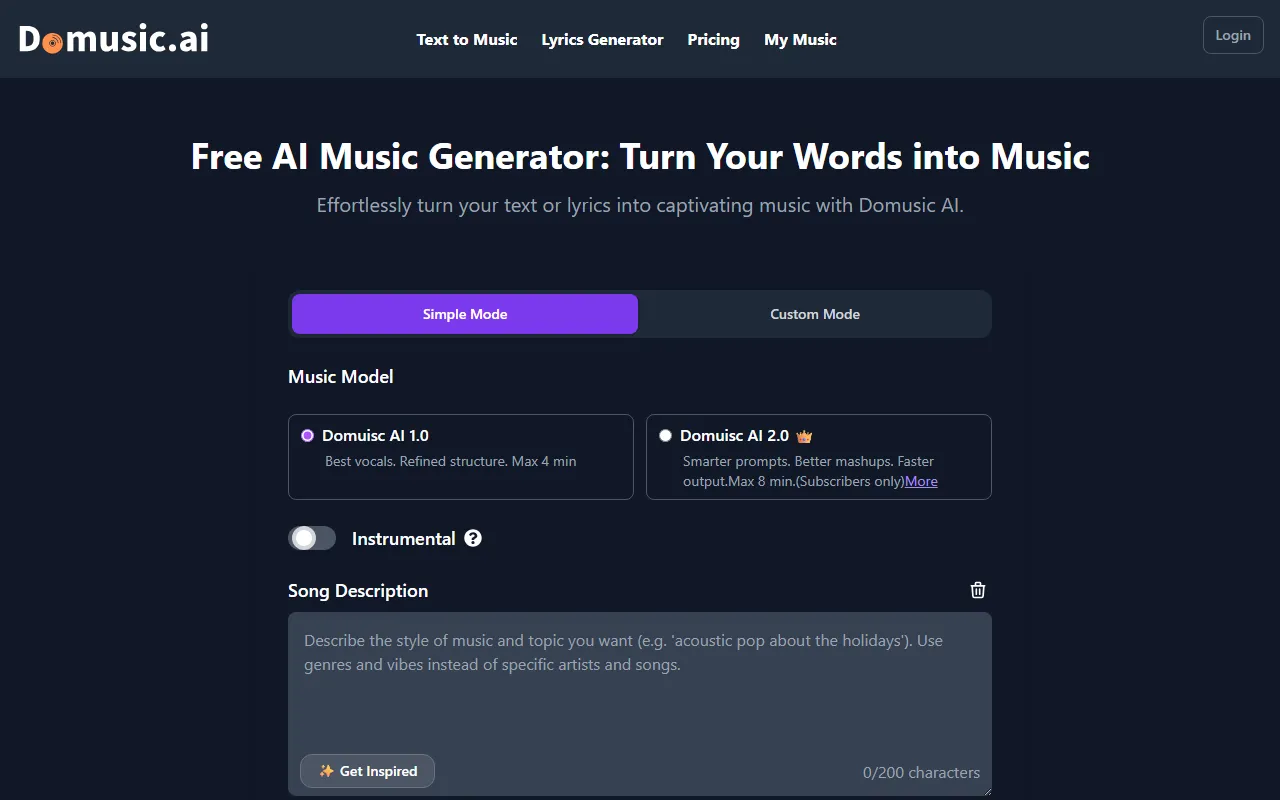 Domusic.ai generates custom songs with lyrics and music from simple text prompts fast.