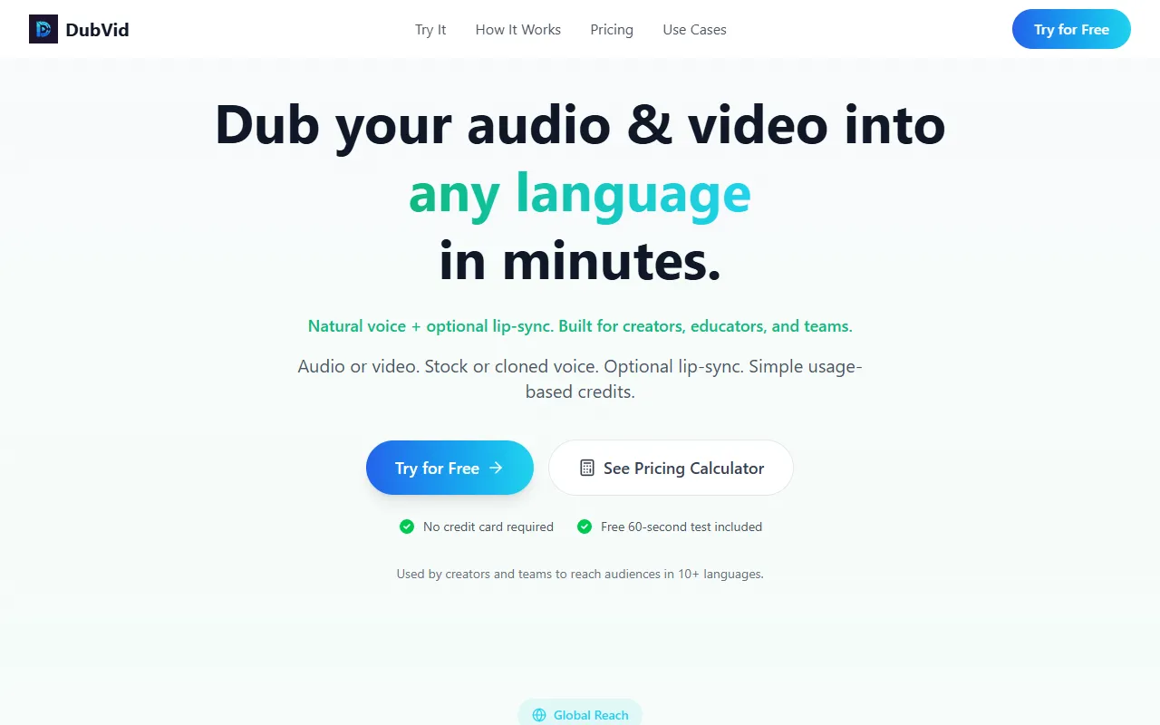 DubVid: AI-powered dubbing for quick, multilingual video localization with voice cloning and lip-sync.