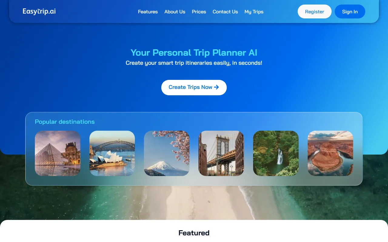 Revolutionize travel planning with EasyTrip.AI: personalized, seamless, eco-friendly itineraries at your fingertips.