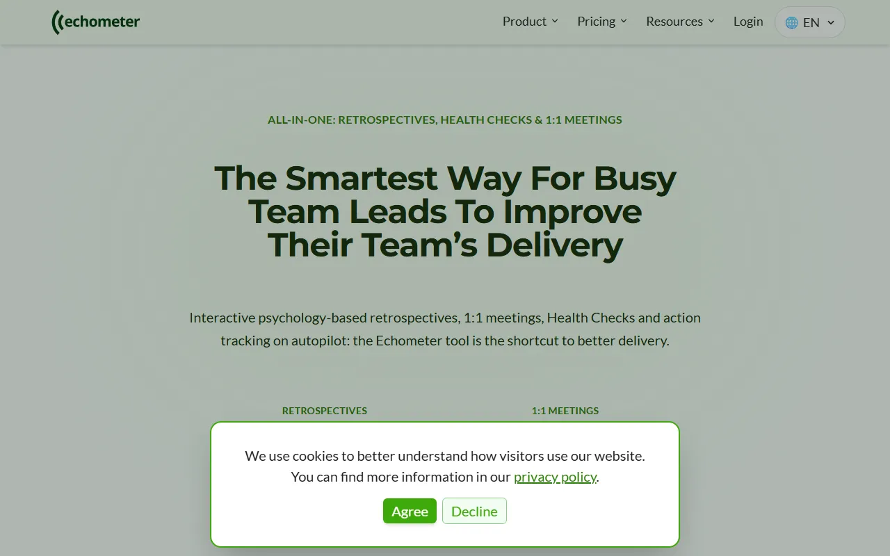 Echometer enters the AI Productivity arena as a purpose-built AI solution for professionals, teams, and business leaders. Echometer: intuitive retrospective board with voting, mood tracking, agile KPIs, and powerful coaching insights. In a market crowded with generic tools, Echometer distinguishes itself through its specialized focus on delivering measurable results in productivity and task management and a user experience designed to get you productive from day one.