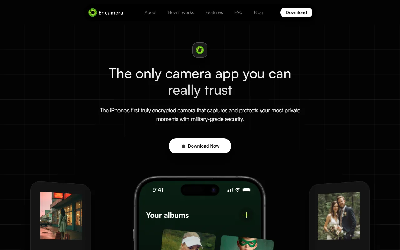 Encamera: encrypted camera app offering instant, secure photo/video capture with total privacy.