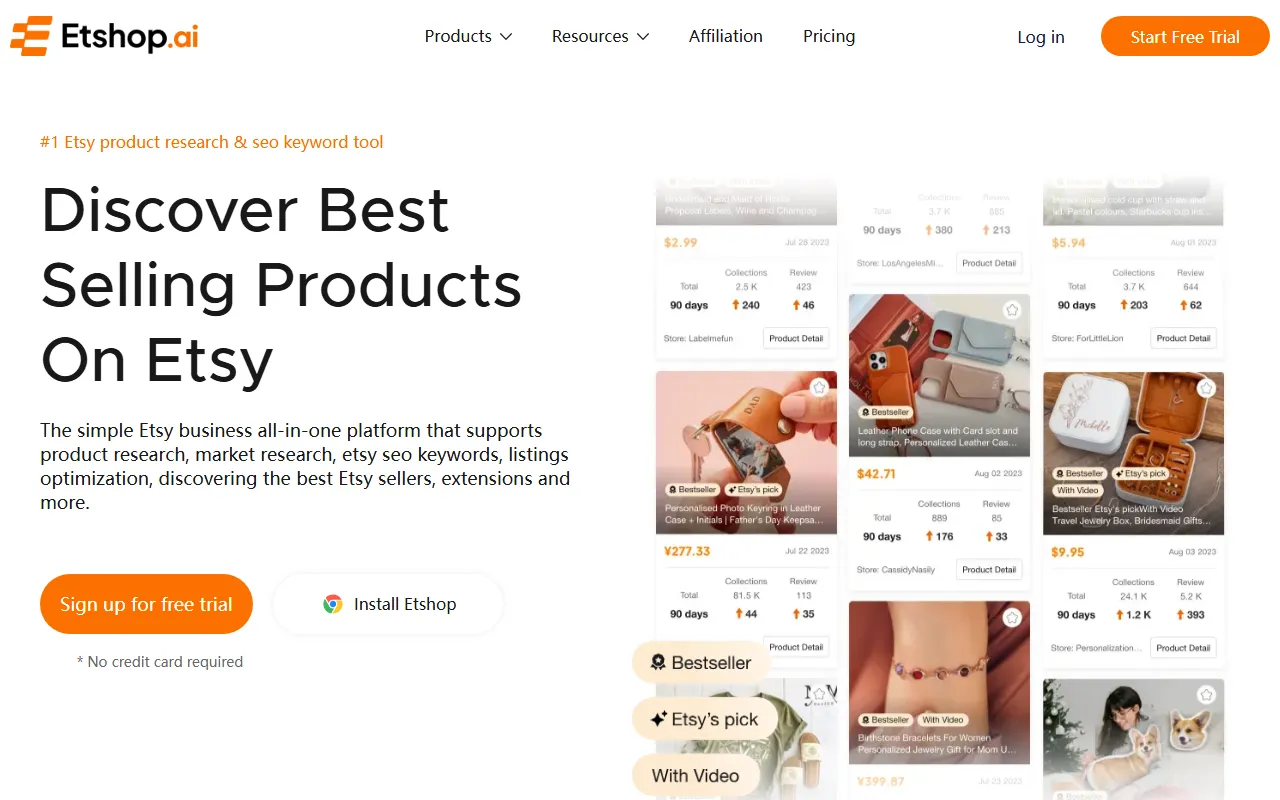Etshop offers AI-driven market insights and SEO tools to boost Etsy sellers' sales efficiently.