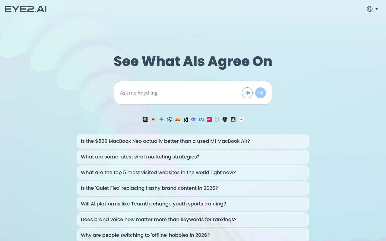Eye2.AI aggregates and compares AI model answers for fast, reliable fact-checking and research.