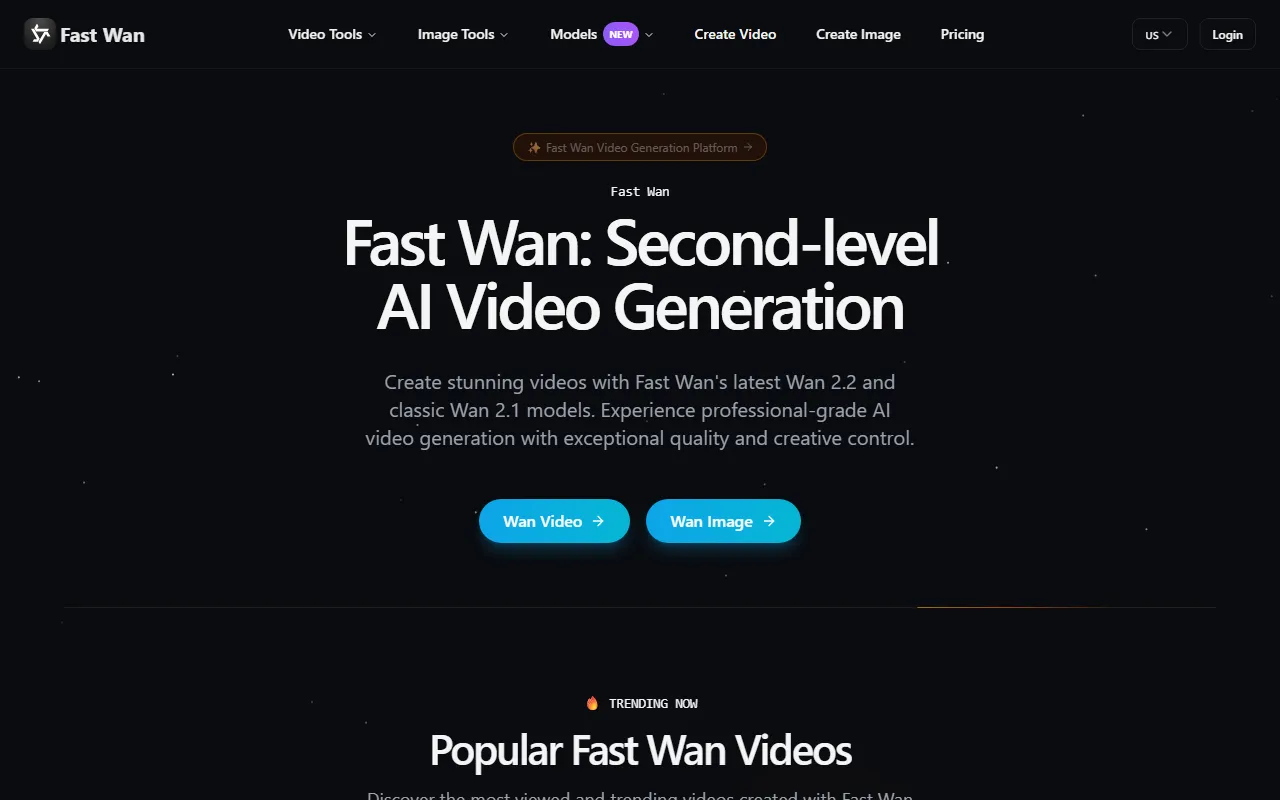 Fast Wan generates professional 720P AI videos in seconds with ultra-fast speed and high quality.