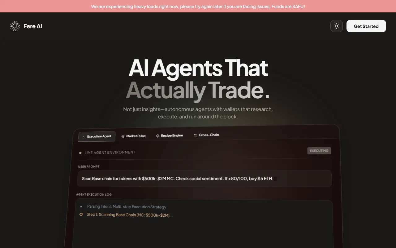 Fere AI offers autonomous, verified AI agents for secure, real-time crypto research and trading.