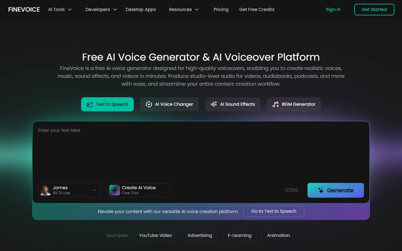 FineVoice 2.0 enters the AI Audio arena as a purpose-built AI solution for podcasters, musicians, and audio engineers. Transform your video projects with 1000+ unique AI voices and seamless voiceover customization tools. In a market crowded with generic tools, FineVoice 2.0 distinguishes itself through its specialized focus on delivering measurable results in audio production and enhancement and a user experience designed to get you productive from day one.