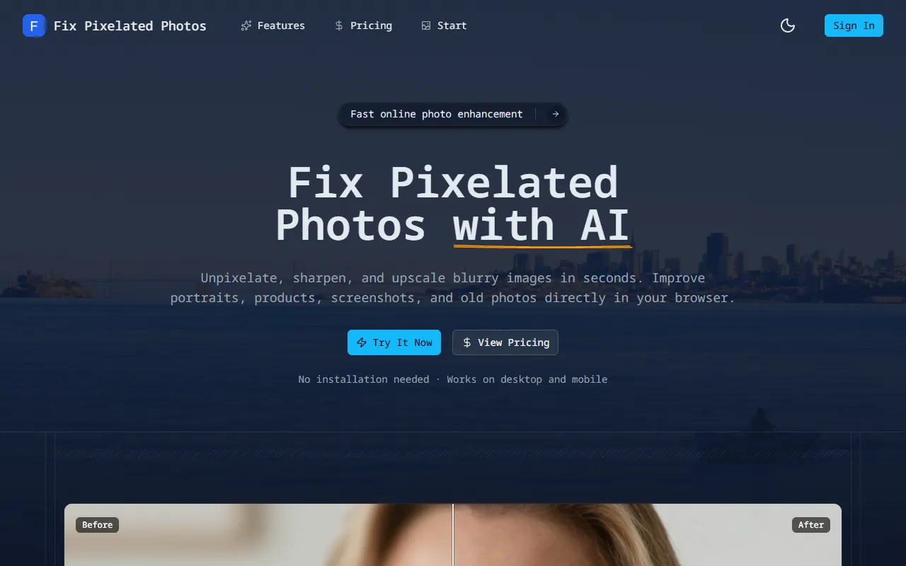For designers, artists, and creative professionals seeking smarter ways to handle image generation and visual design, Fix Pixelated Photos presents an intriguing proposition. Fix Pixelated Photos uses AI to unpixelate, sharpen, and upscale images effortlessly online. The platform aims to bridge the gap between complex AI technology and practical, everyday utility, making advanced capabilities accessible without requiring deep technical expertise.