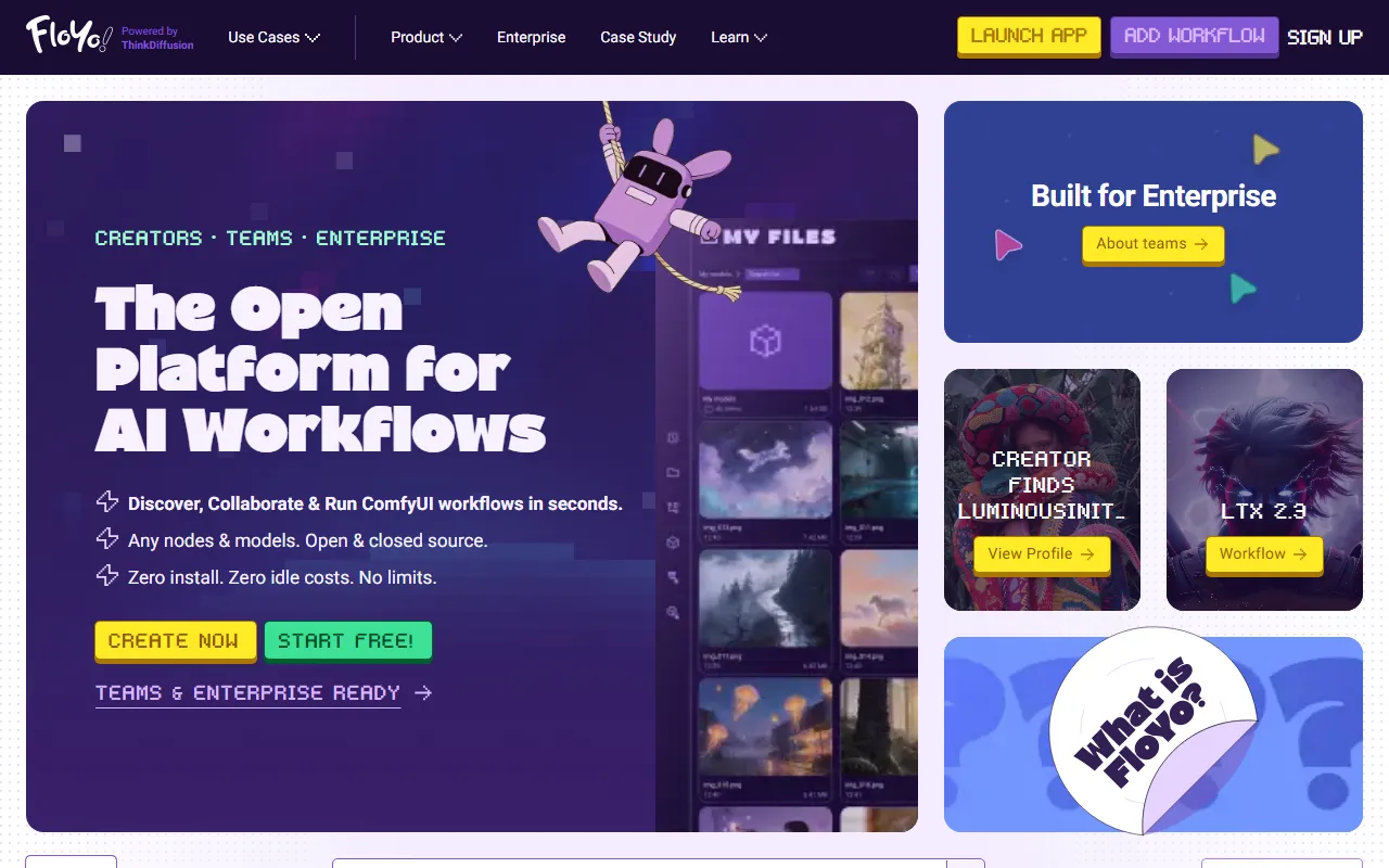 In the evolving world of image generation and visual design, finding the right tool can be the difference between thriving and merely surviving. Floyo has positioned itself as a compelling option for designers, artists, and creative professionals who demand more from their AI-powered solutions. Floyo offers instant, hassle-free ComfyUI workflow runs with preloaded models and unlimited building.