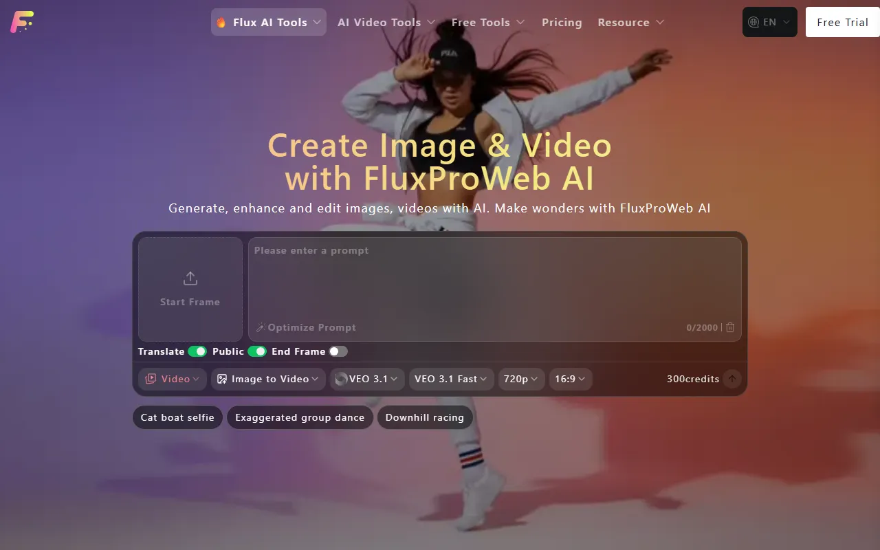 - AI video creation: Flux Pro Online provides robust ai video creation functionality, allowing users to generate with precision and efficiency. This feature is powered by advanced AI models that adapt to your specific use case and improve over time based on your interactions.