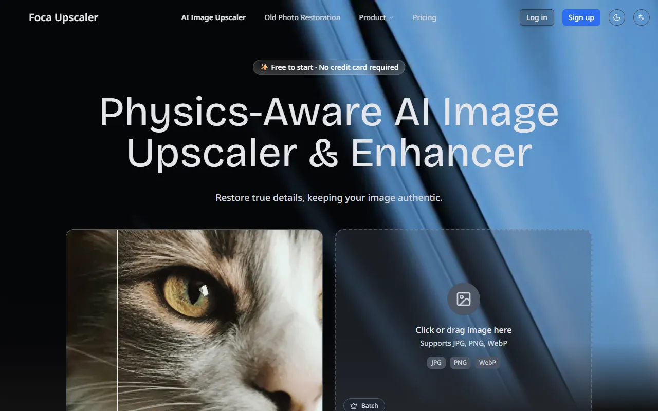Foca Upscaler provides physics-aware AI image enhancement, delivering sharp, detailed, and true-to-original upscaled photos.