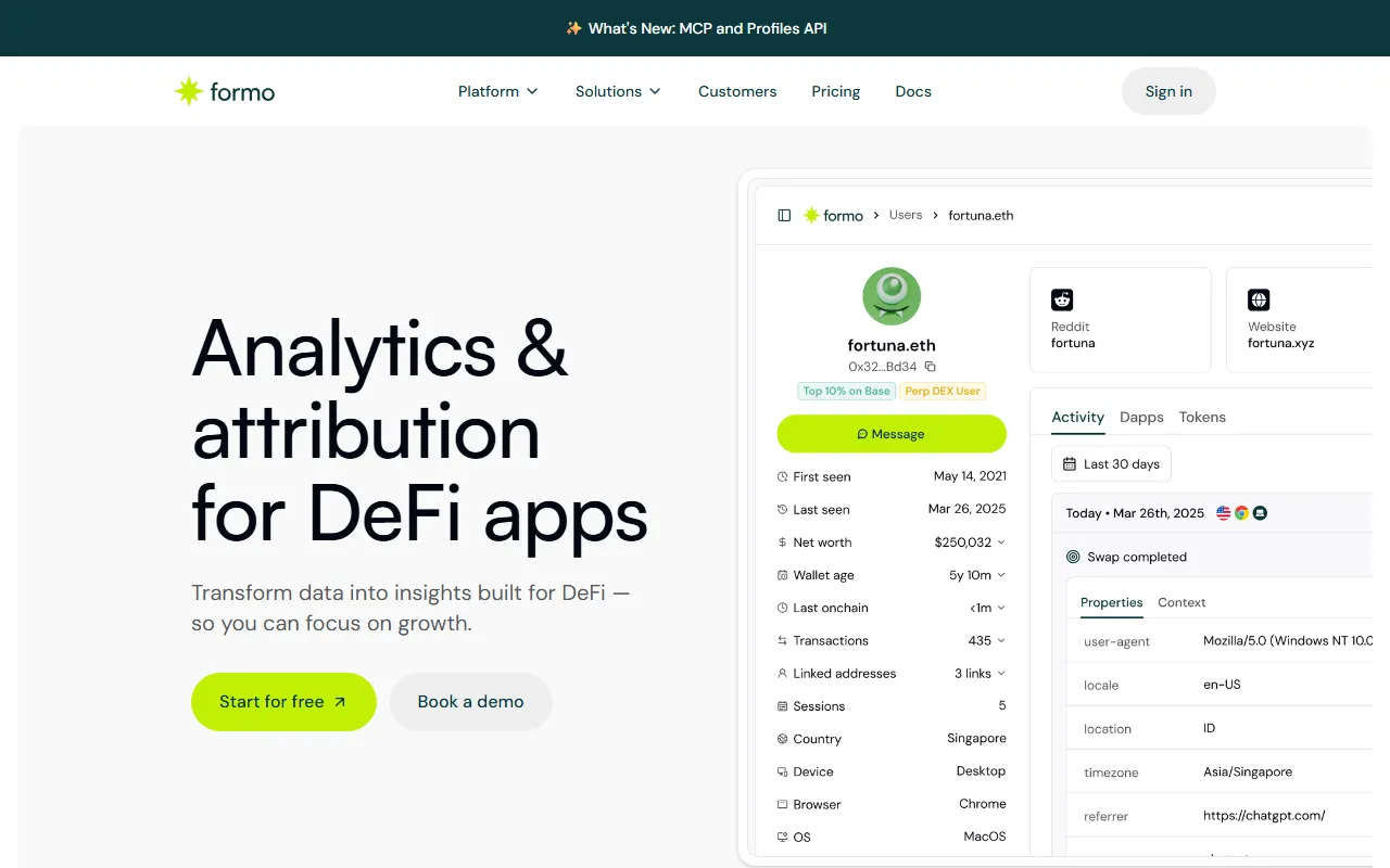 In the evolving world of financial analysis and management, finding the right tool can be the difference between thriving and merely surviving. Formo has positioned itself as a compelling option for financial analysts, accountants, and business owners who demand more from their AI-powered solutions. Formo Agentic Analytics: AI-powered Web3 data assistant offering insights, anomaly alerts, and growth recommendations.