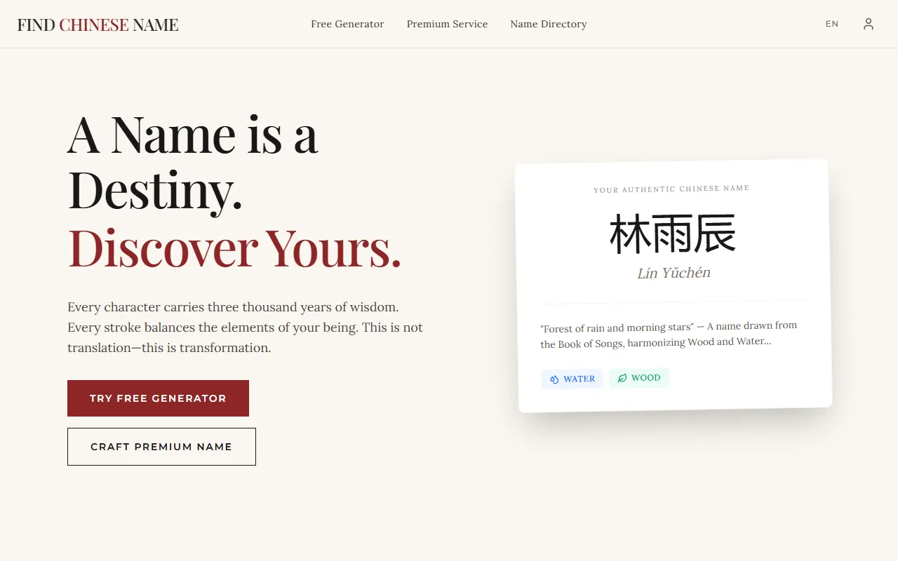 In the evolving world of content creation and writing, finding the right tool can be the difference between thriving and merely surviving. Free Chinese Name Generator and Translator has positioned itself as a compelling option for writers, marketers, and content creators who demand more from their AI-powered solutions. AI-powered Chinese name generator offering authentic meanings, cultural history, destiny analysis, and custom calligraphy seals.