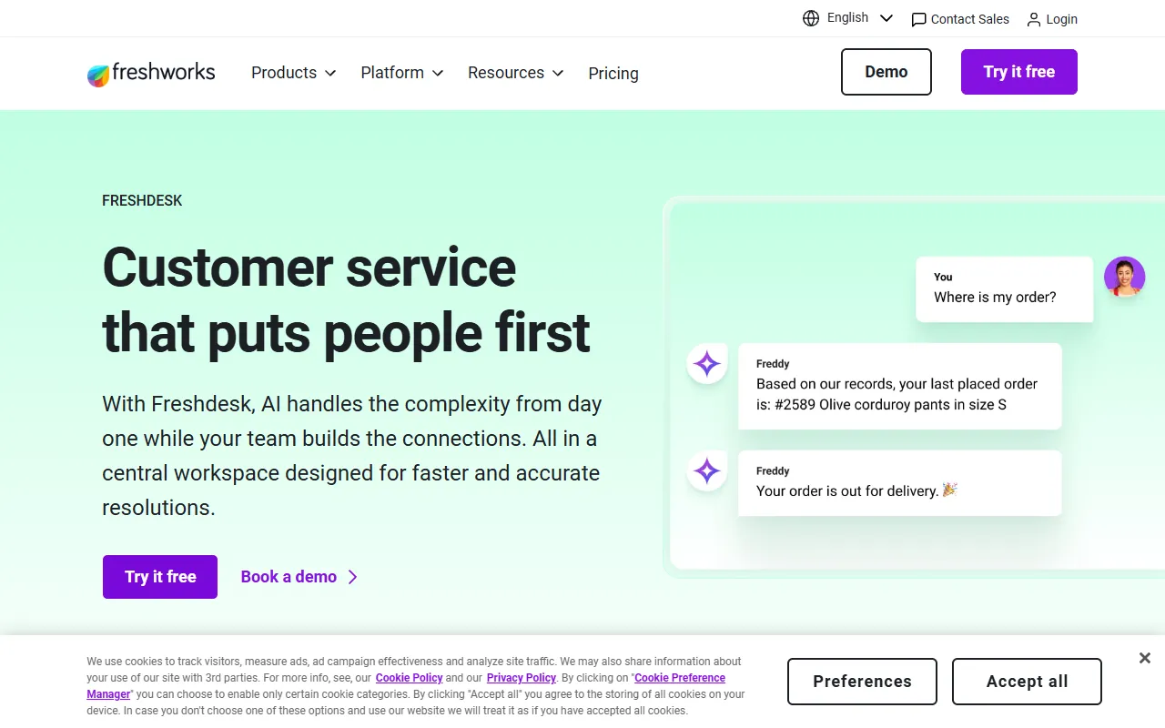 - Freshworks: Freshdesk AI includes a dedicated freshworks engine that processes your inputs intelligently. The system learns from each interaction, delivering increasingly personalized and accurate results the more you use it.