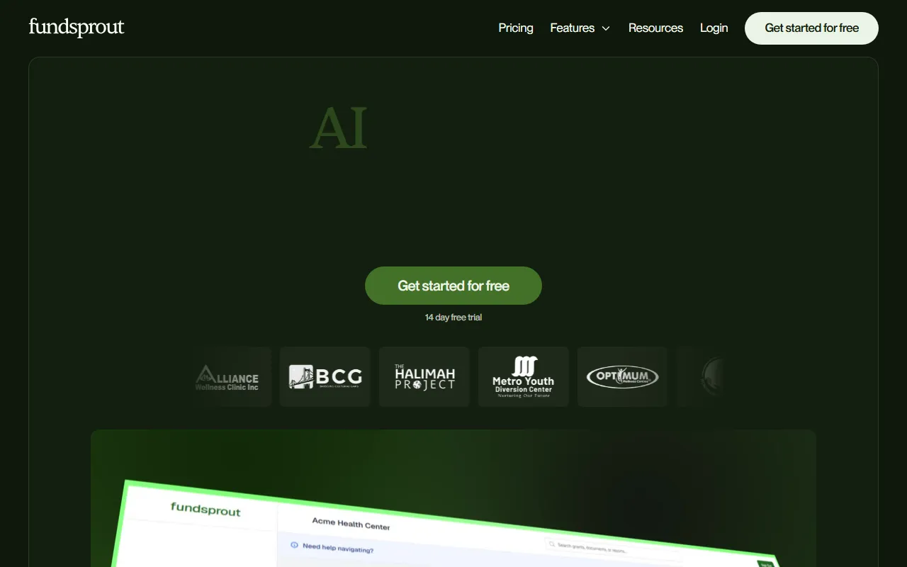 Fundsprout: AI-driven grant discovery, proposal drafting, and reporting for nonprofits and agencies.