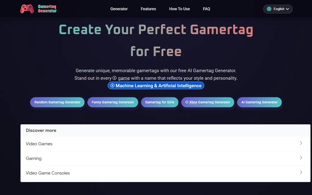 - Content generation: With built-in content generation capabilities, Gamertag Generator helps professionals, teams, and everyday users tackle this aspect of their workflow head-on. The AI-driven approach ensures consistent, high-quality output every time while reducing manual effort significantly.