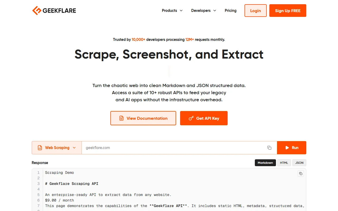 Geekflare API delivers AI-optimized web scraping, advanced rendering, and reliable enterprise-grade data extraction tools.
