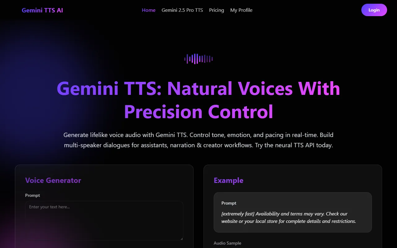 Gemini TTS is best suited for podcasters, musicians, and audio engineers who want to process more efficiently without a steep learning curve. The platform is particularly effective for individuals and small teams who need professional-grade audio content but lack the resources to hire specialized staff or invest in enterprise-level solutions.