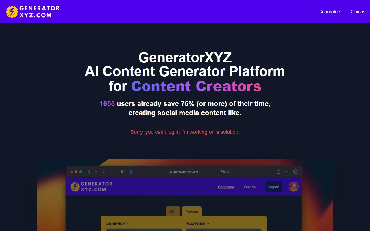 - Content marketing: With built-in content marketing capabilities, Generator XYZ helps writers, marketers, and content creators tackle this aspect of their workflow head-on. The AI-driven approach ensures consistent, high-quality output every time while reducing manual effort significantly.