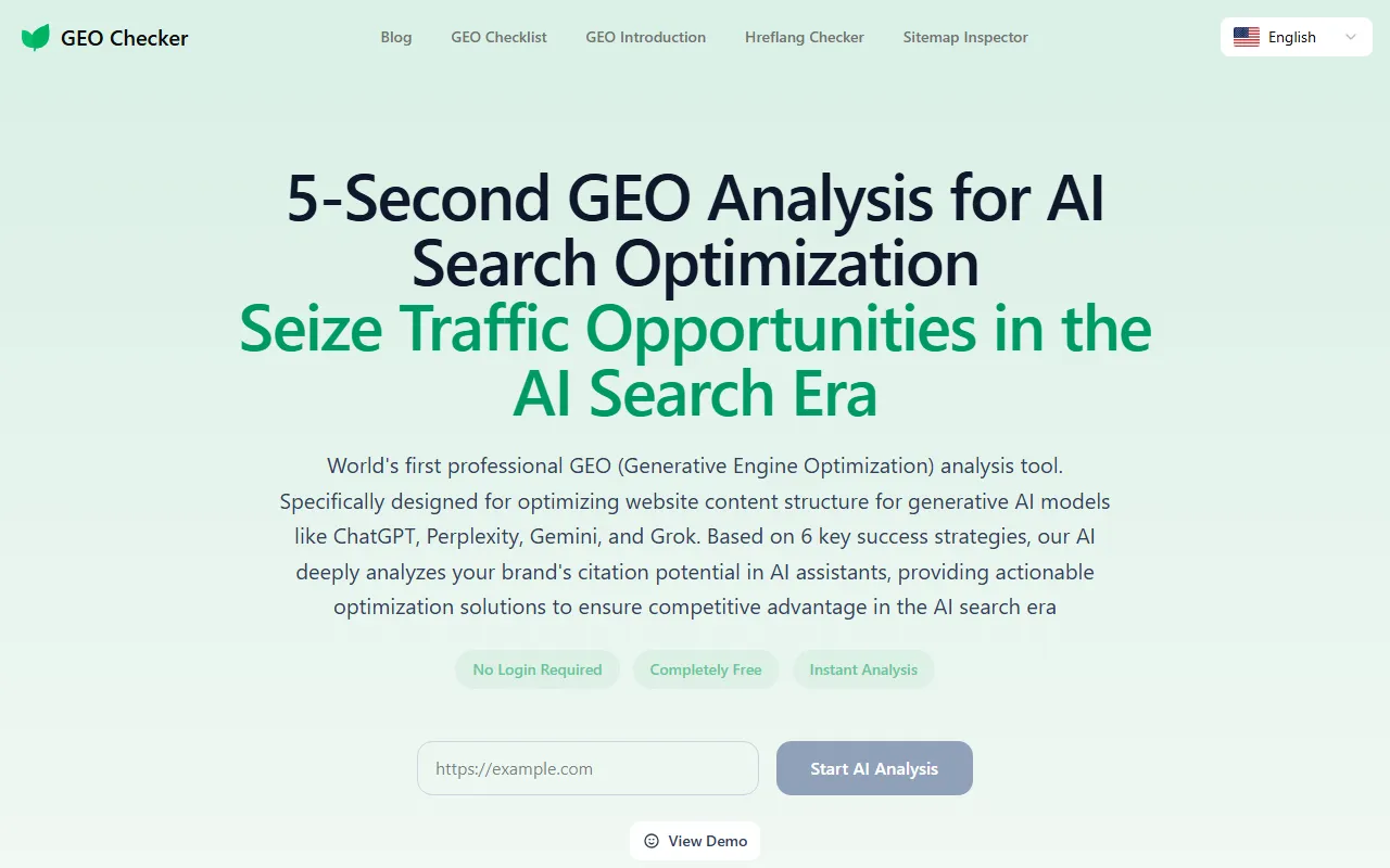 GEO Checker boosts AI search rankings by optimizing websites for leading AI models instantly and free.