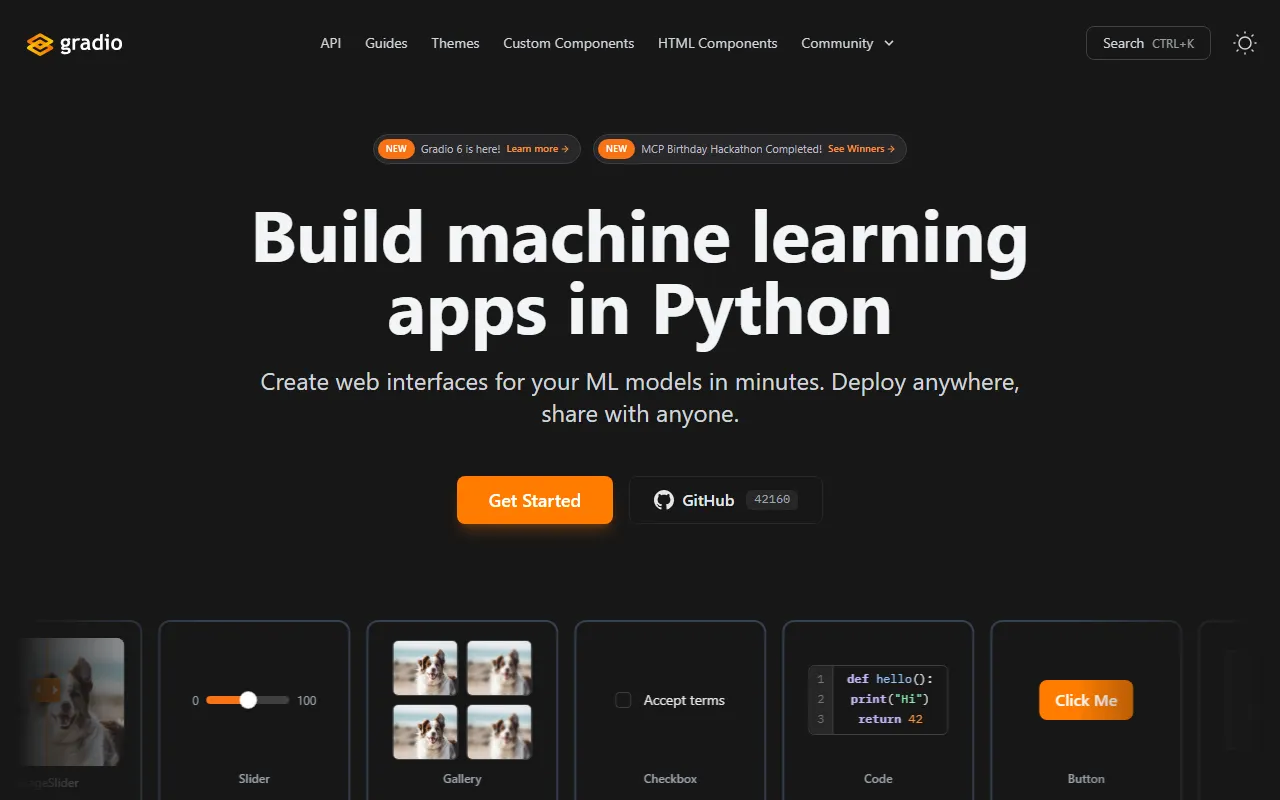Rapidly build and share user-friendly ML model interfaces with Gradio’s seamless web platform.
