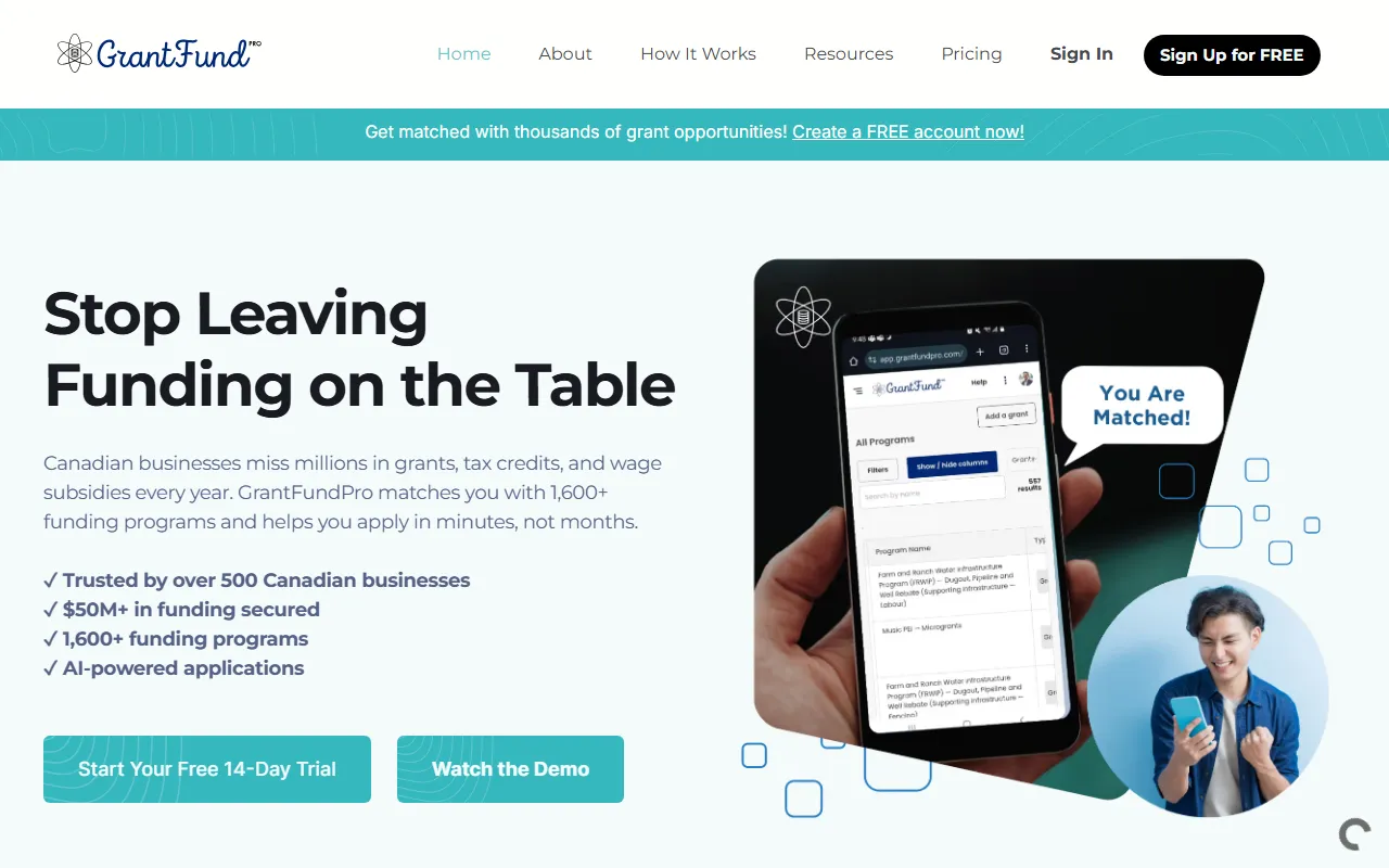 Grant Fund Pro finds tailored business grants, automates applications, and tracks deadlines efficiently.