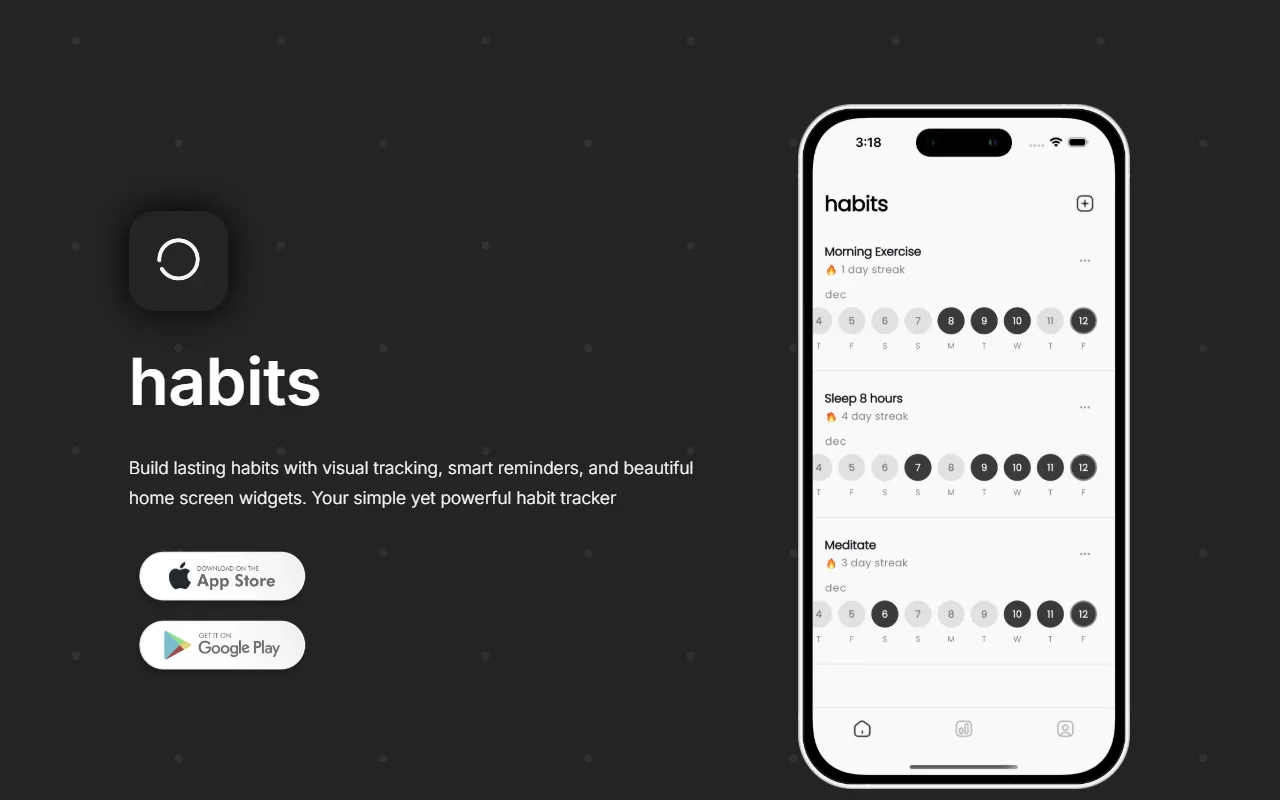 Minimalist habit tracker with visual progress, smart reminders, and home screen widgets for consistent habit-building.